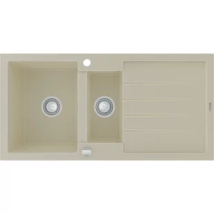 1,5-komorowy z ociekaczem Typ: Wpuszczany w blat Kolor: Beżowy Materiał: Granit Otwór przelewowy: Tak Otwór na baterie:
