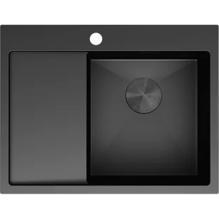 Mexen Exar zlewozmywak stalowy 1-komorowy z ociekaczem prawy 620 x 480 mm, czarny - 6432621005P-70