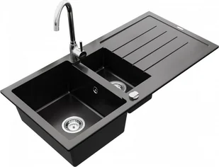 Zlewozmywak Mexen Andres granitowy 1,5-komorowy z ociekaczem i baterią kuchenną Telma, czarny - 6515-77-670200-00