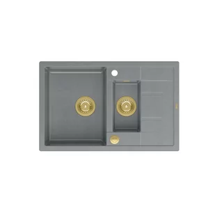 Zlewozmywak GraniteQ MORGAN 156 GraniteQ zlewozmywak silver stone z syfonem Push To Open okrągły 1,5-komorowy z/o / elementy złote