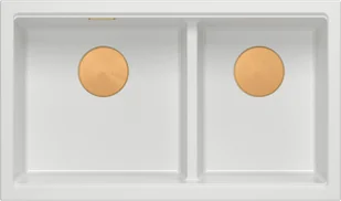 Quadron Logan 120 Zlewozmywak granitowy dwukomorowy podwieszany 76x45 cm biały snow white/miedziany PVD HQL7645U1_PVDC1_U - Napisz do nas i zyskaj dodatkowy rabat