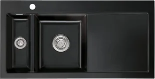 Systemceram Mera 100 Nero, Zlewozmywak ceramiczny, korek manualny, lewa komora