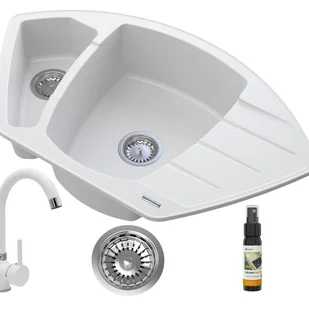 granit (80% kruszywo granitowe, 20% żywica) - Kolor zlewu: biały - Zawartość zestawu: zlew, bateria, syfon manualny - Marka: Granitan - Waga z opakowaniem: 22 kg - EAN: