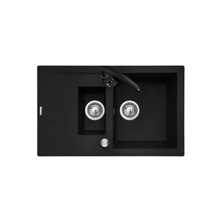 duży funkcjonalny zlewozmywak z ociekaczem, dużą i głęboką komorą oraz baterią w kolorze zlewozmywaka w komplecie. Kolor czarny matowy