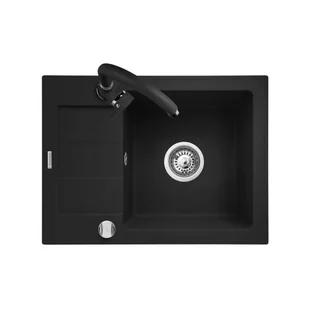funkcjonalny zlewozmywak z ociekaczem, głęboką komorą oraz baterią w kolorze zlewozmywaka w komplecie. Kolor czarny matowy