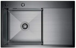 OPIS PRODUKTU Zestaw zlewozmywak dwukomorowy STEEL7849L Czarny W ZESTAWIE zlewozmywak sitko i system odpływowy Charakteryzująca się eleganckim wykończeniem powierzchni oraz klasyczną i modną stylistyką, wkomponuje się w niemal każdą aranżację kuchni. Charakterystyczną cechą tej serii produktów jest gięcie oraz spawanie stali, co powoduje zachowanie ostrej stylistyki kątów zlewozmywaka, czego nie można uzyskać w przypadku tłoczonych zlewozmywaków szeroko dostępnych na rynku. CECHY PRODUKTU wykonany ze stali nierdzewnej o grubości o grubości ok 1 mm + 0,8 mm (powłoka wygłuszająca i anty kondensacyjna) charakteryzuje się wyjątkową wytrzymałością głęboka (21 cm) i pojemna komora duży komfort użytkowania duże stalowe sitko z funkcją korka! dodatkowe wygłuszenie komory łatwy montaż Poszukujesz zlewozmywaka z dodatkowym otworem pod myjkę do szklanek lub dozownik? Koniecznie zadzwoń i sprawdź czy jest taka możliwość oraz w jakiej cenie.
