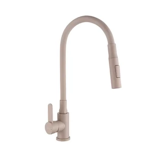 Bateria kuchenna stalowa Invena Roko beżowa to funkcjonalna i estetyczna bateria zlewozmywakowa zaprojektowana do wygodnej pracy przy zlewie. Jednouchwytowa konstrukcja oraz elastyczna wylewka z pamięcią kształtu umożliwiają łatwe ustawienie kierunku i wysokości strumienia, co ułatwia mycie naczyń, owoców i napełnianie dużych garnków. Dwufunkcyjna wylewka oferuje dwa tryby strumienia: klasyczny oraz natryskowy, a obrotowa końcówka zwiększa zasięg i komfort użytkowania. Ceramiczny mieszacz 35 mm zapewnia trwałość oraz płynną, precyzyjną regulację temperatury i ciśnienia wody.