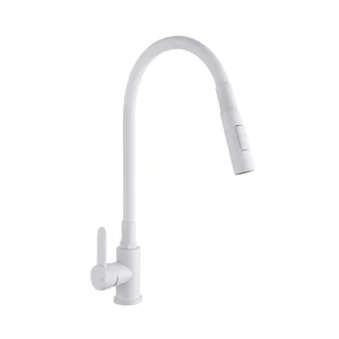 Bateria kuchenna stalowa Invena Roko biała to nowoczesna i funkcjonalna bateria zlewozmywakowa zaprojektowana z myślą o wygodnej pracy w kuchni. Jednouchwytowa konstrukcja oraz elastyczna, ruchoma wylewka z pamięcią kształtu pozwalają ustawić strumień pod dowolnym kątem, co ułatwia mycie naczyń, płukanie warzyw i napełnianie garnków. Dwufunkcyjna wylewka oferuje dwa tryby strumienia: normalny oraz spray, a obrotowa końcówka zapewnia komfort użytkowania zarówno przy zlewach jedno-, jak i dwukomorowych. Ceramiczny mieszacz 35 mm gwarantuje płynną i precyzyjną regulację temperatury oraz ciśnienia wody.