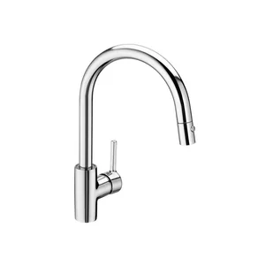 Bateria kuchenna z wyciąganą wylewką i dwiema funkcjami strumienia wody, wykonana z mosiądzu z chromowanym wykończeniem, co zapewnia wysoką odporność i trwałość. Posiada obrotową wylewkę, która umożliwia dostęp do wielu obszarów zlewu, oraz aerator z reduktorem zużycia wody, który zapobiega rozpryskiwaniu. Jej wykończenie z powłoką elektrolityczną gwarantuje trwały połysk i ułatwia czyszczenie. Bateria antywapienna z ekskluzywnym wkładem ceramicznym Roca, który pozwala na płynną i precyzyjną obsługę z gwarancją miliona cykli otwierania i zamykania.