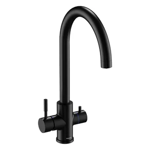 Bateria kuchenna do wody filtrowanej i niefiltrowanej PHILIPS ASH3512/10 - czarny mat Nowoczesna, trójdrożna bateria kuchenna stworzona z myślą o użytkownikach systemów filtracji wody. Jej eleganckie, matowe wykończenie w kolorze czarnym doskonale komponuje się z nowoczesnymi aranżacjami kuchennymi, łącząc styl z funkcjonalnością. Wykonana z wysokiej jakości stali nierdzewnej, bateria charakteryzuje się odpornością na korozję, zarysowania i intensywne użytkowanie. Model wyposażony jest w dwa niezależne uchwyty - jeden do wody zimnej i ciepłej, drugi do wody filtrowanej. Dzięki oddzielnym kanałom przepływu, woda filtrowana nie miesza się z wodą wodociągową, co zapewnia maksymalne bezpieczeństwo i higienę.