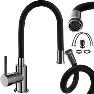 czarno/srebrny; materiał: silikon, ceramika, stal nierdzewna satynowana; obrotowa wylewka: 360°; wysokość regulowana: tak; odkręcany perlator: tak; głowica ceramiczna: