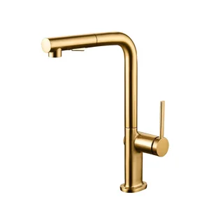 Bateria kuchenna Look firmy Maier ze szczotkowanym złotym wykończeniem. Jest to bateria jednouchwytowa z wyciąganą słuchawką i podwójną funkcją, natryskiem i strumieniem. Zawiera aerator do regulacji i zmniejszenia zużycia wody. Bateria jest dostarczana ze wszystkimi częściami niezbędnymi do instalacji oraz ze szczegółową instrukcją, zapewniającą szybką i łatwą instalację.