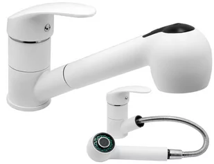 HAND BATERIA KUCHENNA Z WYCIĄGANĄ WYLEWKĄ BIAŁA ✅Bateria kuchenna wykonana z mosiądzu ✅Słuchawka wykonana z tworzywa PCV ✅W kolorze CZARNYM ✅Głowica ceramiczna 40mm ✅Wylewka wyciągana, obrotowa ✅Dwa rodzaje strumienia wody ✅System anty-kamień zapobiegający odkładaniu się kamienia na słuchawce ✅Perlator napowietrzający ✅W komplecie: bateria, słuchawka, obciążnik, wężyki, komplet podłączeń ✅Bateria bardzo łatwa w montażu SPECYFIKACJA I DANE TECHNICZNE: Specyfikacja i dane techniczne: ✅Standardowy otwór montażowy ✅Długość węża 125 cm ✅Wysokość baterii 175 mm ✅Zasięg wylewki od środka baterii 200 mm 1️⃣Kolor biały 2️⃣Słuchawka dwufunkcyjna 3️⃣Wyciągana wylewka 4️⃣Jednouchwytowe sterowanie strumieniem i temperaturą wody GALERIA ZDJĘĆ BATERII UMIESZCZONEJ NA ZLEWOZMYWAKACH DOSTĘPNYCH NA NASZYCH AUKCJACH