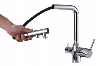 Bateria trójdrożna DWUOBWODOWA do filtra LiVra CHROM z wyciąganą STALOWĄ WYLEWKĄ WW oraz funkcją PRYSZNIC Bateria Trójdrożna dwuobwodowa LiVra CHROM kolor CH...