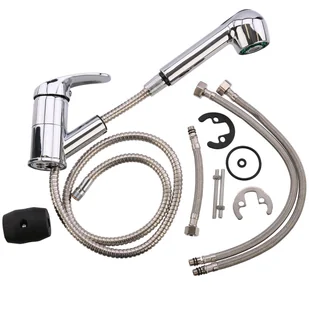 Bateria zlewozmywakowa z wyciąganą wlewką, zlew wlewka, kran obrotowy 360 chromowana