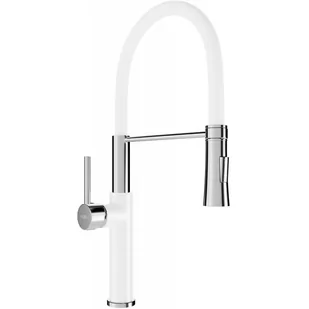 Dane techniczne: Materiał: Mosiądz Wykończenie: Biały Głowica: Ceramiczna Perlator: Tak Rodzaj wylewki: Wyciągana Zasięg wylewki: 268 mm Wysokość: 490 mm Typ: Jednouchwytowa