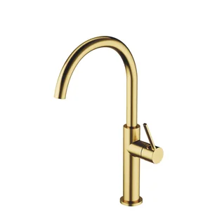Omnires Bateria kuchenna Liron mosiądz Bateria kuchenna Omnires z serii Lirion to solidny i funkcjonalny model przeznaczony do codziennego użytku. Wyposażona w trwałą głowicę ceramiczną zapewnia płynną i precyzyjną regulację temperatury oraz strumienia wody, a także wysoką odporność na zużycie. Dzięki wężom przyłączeniowym o długości 35 cm montaż jest prosty i wygodny, nawet w ciasnych przestrzeniach pod zlewem. Wylewka o zasięgu 200 mm zapewnia komfortowe korzystanie z baterii, umożliwiając swobodne mycie naczyń i napełnianie garnków. Model nie posiada wyciąganej wylewki, co czyni go klasycznym i bezawaryjnym rozwiązaniem, idealnym dla osób ceniących prostotę.