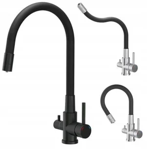 AGNES SteelQ stalowa bateria kuchenna trójdrożna z elastyczną wylewką, pure carbon