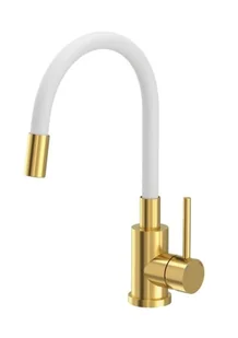 Quadron POP Bateria zlewozmywakowa stalowa MAGGIE kolor złoty z elastyczną białą wylewką