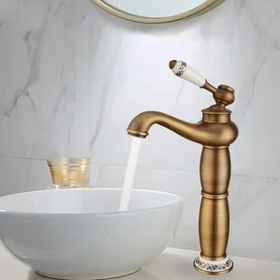 można go podłączyć do rur z ciepłą i zimną wodą, aby zrealizować podwójne zastosowanie ciepłej i zimnej wody, można ustawić odpowiednią temperaturę wody w zależności od potrzeb. Stylowy wygląd: antyczny kolor, opływowa wylewka, ceramiczny uchwyt i gładkie linie dodają produktowi piękna i elementów vintage, stanowiąc jasny krajobraz w łazience lub kuchni. Łatwa instalacja: Pełna gama akcesoriów, szczegółowe instrukcje w języku angielskim i prosta konstrukcja pozwalają na szybką instalację i użytkowanie.