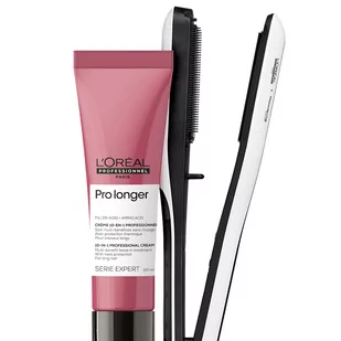 Krem termoochronny Loreal Pro Longer poprawia wygląd włosów na długościach i końcach oraz sprawia, że wyglądają na grubsze. Dzięki profesjonalnej formule z dodatkiem Filler A-100 i aminokwasu włosy wydają się mocniejsze na całej długości. Krem ochrania przed ciepłem (aż do 230 °C). Prostownica parowa Loreal Steampod zapewnia wilgotność włosów, nie zabiera z nich wilgoci jak klasyczna prostownica, dzięki czemu włosy nie puszą się nawet przy wyższej wilgotności powietrza. Dodatkowo podwójna technologia płytek: