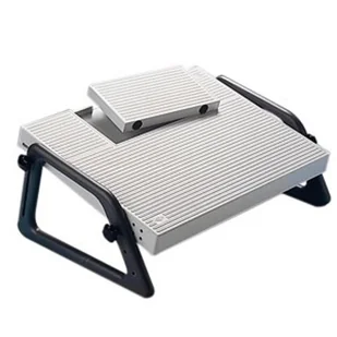 Podnóżek Relaxregulowany: Płynna regulacja wysokości i nachylenia- Minimalna wysokość: 40 mm z przodu / 70 mm z tyłu- Maksymalna wysokość: 15 mm z przodu / 210 mm z tyłu- wykonany z nietłukącego polistyrenu- z wgłębieniem o wymiarach (szer.) 220 x (gł.) 120 x (wys.) 20 mm na przełącznik nożny dyktafonu itp. żebrowana powierzchnia zapobiega ześlizgiwaniu się stóp- Wymiary podnóżka: