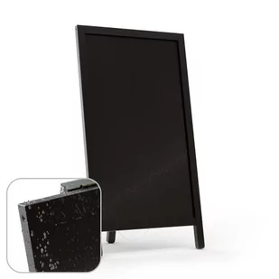 Potykacz wodoodporny stojak kredowy CZARNY jednostronny 78x44 cm stojak reklamowy TRWAŁA POWIERZCHNIA - czarna kredowa powierzchnia została wykonana z tworzywa sztucznego ABS, które zapewnia odporność na wodę oraz wyjątkową trwałość. Można po niej pisać kredą i markerami kredowymi. Świetnie sprawdza się do tworzenia rysunków, haseł promocyjnych i różnorodnych notatek. SOLIDNA RAMA – wytrzymała, drewniana i niezwykle lekka. Została pokryta lakierem, co zapewnia elegancki kolor przy jednoczesnym zachowaniu naturalnej struktury drewna i układu słojów.