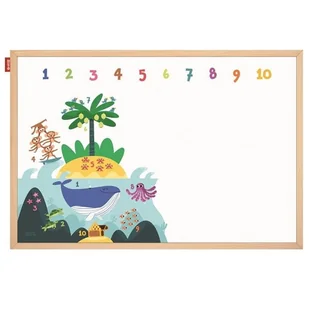 Tablica edukacyjna magnetyczna suchościeralna 60x90cm nadruk CYFERKI MEMOBE Edukacja połączona z zabawą School Boards but Fun Na powierzchni tablicy wykonany jest kolorowy nadruk cyferek od 1 do 10 z ilustracjami morskich i lądowych zwierzątek i rybek, które mają za zadanie ułatwić dziecku przeliczenie i zapamiętanie kolejnych liczb. Zabawa polega na tym, aby dziecko, które prawidłowo odczyta cyferkę, odszukało oznaczone tym samym kolorem zwierzątko lub rybkę, przeliczyło je, a następnie zapisze cyferkę poniżej na białej powierzchni tablicy i narysuje zwierzątka w ilości odpowiadającej rozpoznanej cyferce. Nauka cyferek i zabawa przeznaczona dla dzieci w wieku przedszkolnym i szkolnym nauczania początkowego wraz z rodzicami i nauczycielami. Tablica polecana jest jako wyposażenie wszystkich jednostek edukacyjnych nauczania podstawowego i przedszkolnego oraz jako element wyposażenia pokoju dziecka w każdym domu. Klasyczna i modernistyczna konstrukcja oraz kunsztowne wykończenie sprawiają, że tablica doskonale wkomponowuje się w wystrój zarówno klasy szkolnej jak i pokoju dziecięcego.