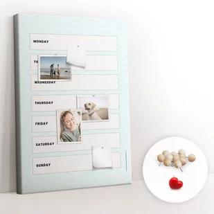 Może to być szczególnie przydatne w przestrzeniach przeznaczonych do nauki. WYMIAR : 70x100 cm Drewniane pinezki w komplecie.