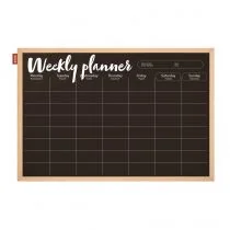 Planer tygodniowy MemoBe, kredowy• czarna powierzchnia z nadrukowanym w kolorze białym harmonogramem umożliwiającym planowanie zadań tygodniowych• powierzchnia wykonana z wysokiej jakości paneli drewnopochodnych pokrytych matowym lakierem w kolorze czarnym• optymalny poziom szorstkości zapewnia. . .