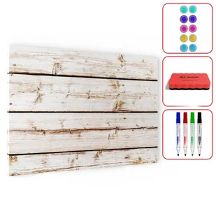 Mogą one ozdobić tablicę lub służyć do przyczepienia zdjęć lub notatek. Tablica jest również w pełni ścieralna. Można pisać po niej markerami, tworzyć rysunki i notatki. Następnie wystarczy papierowy ręcznik lub gąbka do wytarcia tablicy. Można to robić na sucho lub na mokro.