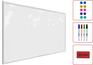 Tablica może być montowana w pionie oraz w poziomie. ZASTOSOWANIE - tablica idealnie nadaje się zarówno do użytku biurowego jak i domowego. Stanowi znakomite wyposażenie nowoczesnego biura oraz placówki handlowej. Z powodzeniem sprawdza się także w domu oraz pokoju dziecięcym. ZESTAW - wraz z tablicą w zestawie znajdziemy kompletne wyposażenie pozwalające na natychmiastowe użytkowanie: