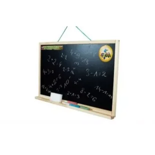 Wisząca jednostronna drewniana kredowa tablica z podstawą na kredę. 3 rodzaje zestawu etykiet: alfabet + zegar z ruchomymi wskazówkami. Wyposażona w gąbkę oraz kredę. Rozmiar produktu(dł x szer x wys) cm3,5 x 72,5 x 45,5