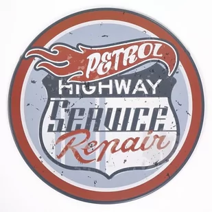Produkt przedstawia napis Petrol Highway Service Repair. Tabliczka retro sprawdzi się nie tylko w barach, ale również jako stylowy dodatek do wystroju wnętrza w stylu vintage. Produkt stanowić będzie także ciekawy motyw w warsztatach. Metalowy plakat stanowi oryginalny pomysł na prezent. ean: 5907772079089 Średnica całkowita (CM):