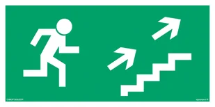 AA007 KIERUNEK DO WYJŚCIA DROGI EWAKUACYJNEJ SCHODAMI W GÓRĘ W PRAWO, PS - PŁYTA PCV 1MM FOTOLUMINESCENCYJNA; (400X200MM)