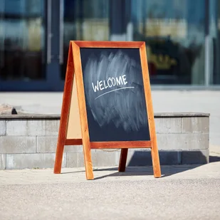 Tablica jest dwustronna i ma drewnianą ramę barwioną na brązowo, stanowiącą stylowy kontrast z czarną tablicą. Do zapisania komunikatu użyj kredy dołączonej do zestawu. Umieść ramę na tablicę w swoim sklepie lub przy wejściu, aby stworzyć wyjątkowe pierwsze wrażenie.