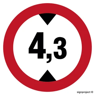 SA007 ZAKAZ WJAZDU POJAZDÓW O WYSOKOŚCI PONAD 4,3 M., PN - PŁYTA PCV 1MM; (600X600MM)