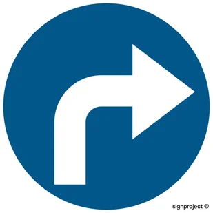 SA021 NAKAZ JAZDY W PRAWO (SKRĘCANIE ZA ZNAKIEM), PN - PŁYTA PCV 1MM; (600X600MM)