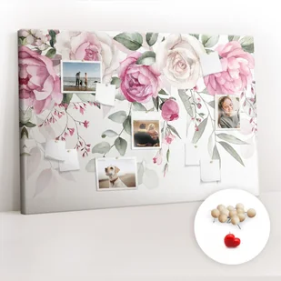Korkowa Tablica XXL - Planer na Ścianę 120x80 cm - Akwarelowe róże + Drewniane Pinezki