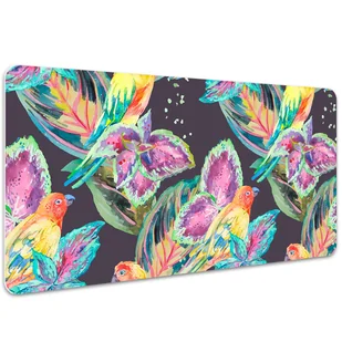 Duża mata na biurko Wzór w papugami 100x50 cm Podkładka winylowa na biurko to nie tylko praktyczny dodatek, ale także dekoracyjny element, który subtelnie podkreśli styl każdego pomieszczenia, bez względu na wiek czy charakter. Każdy blat, na którym zdecydujesz się położyć naszą wyjątkową podkładkę, nabierze nowego wymiaru estetycznego, wzbogacając zarówno przestrzeń dziecięcego pokoju, jak i eleganckiego biura. Wygląd naszej podkładki winylowej jest rezultatem precyzyjnego, cyfrowego druku, który podkreśla intensywność kolorów i detalii wzoru. Po rozłożeniu maty możesz spokojnie pracować, nie martwiąc się o niechciane rysy czy inne uszkodzenia. Mata jest niezwykle wytrzymała i solidna.