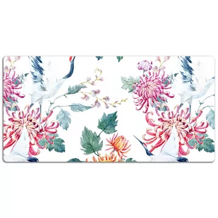 Mata ochronna na biurko Czaple i kolorowe kwiaty 120x60 cm Podkładka winylowa na biurko to nie tylko praktyczny dodatek, ale także dekoracyjny element, który subtelnie podkreśli styl każdego pomieszczenia, bez względu na wiek czy charakter. Każdy blat, na którym zdecydujesz się położyć naszą wyjątkową podkładkę, nabierze nowego wymiaru estetycznego, wzbogacając zarówno przestrzeń dziecięcego pokoju, jak i eleganckiego biura. Wygląd naszej podkładki winylowej jest rezultatem precyzyjnego, cyfrowego druku, który podkreśla intensywność kolorów i detalii wzoru. Po rozłożeniu maty możesz spokojnie pracować, nie martwiąc się o niechciane rysy czy inne uszkodzenia. Mata jest niezwykle wytrzymała i solidna.