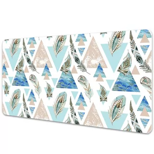 Mata ochronna na biurko Geometryczne trójkąty i pióra 90x45 cm Podkładka winylowa na biurko to nie tylko praktyczny dodatek, ale także dekoracyjny element, który subtelnie podkreśli styl każdego pomieszczenia, bez względu na wiek czy charakter. Każdy blat, na którym zdecydujesz się położyć naszą wyjątkową podkładkę, nabierze nowego wymiaru estetycznego, wzbogacając zarówno przestrzeń dziecięcego pokoju, jak i eleganckiego biura. Wygląd naszej podkładki winylowej jest rezultatem precyzyjnego, cyfrowego druku, który podkreśla intensywność kolorów i detalii wzoru. Po rozłożeniu maty możesz spokojnie pracować, nie martwiąc się o niechciane rysy czy inne uszkodzenia. Mata jest niezwykle wytrzymała i solidna.