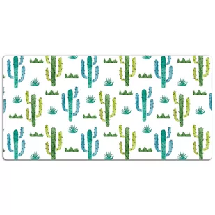 Mata ochronna na biurko Kaktusy malowane farbą 120x60 cm Podkładka winylowa na biurko to nie tylko praktyczny dodatek, ale także dekoracyjny element, który subtelnie podkreśli styl każdego pomieszczenia, bez względu na wiek czy charakter. Każdy blat, na którym zdecydujesz się położyć naszą wyjątkową podkładkę, nabierze nowego wymiaru estetycznego, wzbogacając zarówno przestrzeń dziecięcego pokoju, jak i eleganckiego biura. Wygląd naszej podkładki winylowej jest rezultatem precyzyjnego, cyfrowego druku, który podkreśla intensywność kolorów i detalii wzoru. Po rozłożeniu maty możesz spokojnie pracować, nie martwiąc się o niechciane rysy czy inne uszkodzenia. Mata jest niezwykle wytrzymała i solidna.