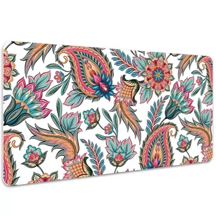 Podkład na biurko Etniczna przyroda 100x50 cm Podkładka winylowa na biurko to nie tylko praktyczny dodatek, ale także dekoracyjny element, który subtelnie podkreśli styl każdego pomieszczenia, bez względu na wiek czy charakter. Każdy blat, na którym zdecydujesz się położyć naszą wyjątkową podkładkę, nabierze nowego wymiaru estetycznego, wzbogacając zarówno przestrzeń dziecięcego pokoju, jak i eleganckiego biura. Wygląd naszej podkładki winylowej jest rezultatem precyzyjnego, cyfrowego druku, który podkreśla intensywność kolorów i detalii wzoru. Po rozłożeniu maty możesz spokojnie pracować, nie martwiąc się o niechciane rysy czy inne uszkodzenia. Mata jest niezwykle wytrzymała i solidna.