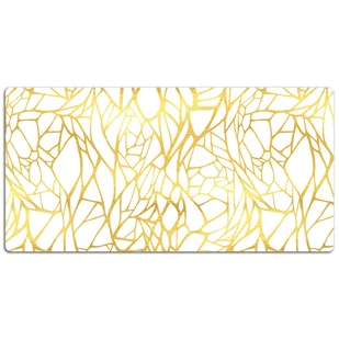 Podkład na biurko Ornament w barwach złota 120x60 cm Podkładka winylowa na biurko to nie tylko praktyczny dodatek, ale także dekoracyjny element, który subtelnie podkreśli styl każdego pomieszczenia, bez względu na wiek czy charakter. Każdy blat, na którym zdecydujesz się położyć naszą wyjątkową podkładkę, nabierze nowego wymiaru estetycznego, wzbogacając zarówno przestrzeń dziecięcego pokoju, jak i eleganckiego biura. Wygląd naszej podkładki winylowej jest rezultatem precyzyjnego, cyfrowego druku, który podkreśla intensywność kolorów i detalii wzoru. Po rozłożeniu maty możesz spokojnie pracować, nie martwiąc się o niechciane rysy czy inne uszkodzenia. Mata jest niezwykle wytrzymała i solidna.