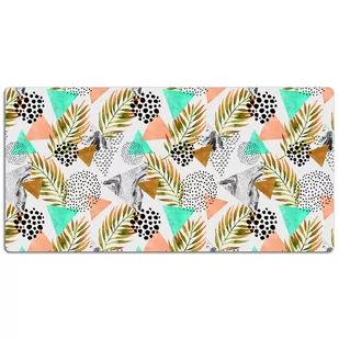 Podkładka na biurko Kropki i liście 120x60 cm Podkładka winylowa na biurko to nie tylko praktyczny dodatek, ale także dekoracyjny element, który subtelnie podkreśli styl każdego pomieszczenia, bez względu na wiek czy charakter. Każdy blat, na którym zdecydujesz się położyć naszą wyjątkową podkładkę, nabierze nowego wymiaru estetycznego, wzbogacając zarówno przestrzeń dziecięcego pokoju, jak i eleganckiego biura. Wygląd naszej podkładki winylowej jest rezultatem precyzyjnego, cyfrowego druku, który podkreśla intensywność kolorów i detalii wzoru. Po rozłożeniu maty możesz spokojnie pracować, nie martwiąc się o niechciane rysy czy inne uszkodzenia. Mata jest niezwykle wytrzymała i solidna.