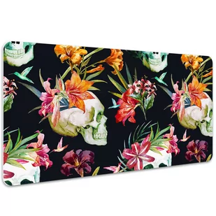 Podkładka na biurko Kwiaty z czaszkami 100x50 cm Podkładka winylowa na biurko to nie tylko praktyczny dodatek, ale także dekoracyjny element, który subtelnie podkreśli styl każdego pomieszczenia, bez względu na wiek czy charakter. Każdy blat, na którym zdecydujesz się położyć naszą wyjątkową podkładkę, nabierze nowego wymiaru estetycznego, wzbogacając zarówno przestrzeń dziecięcego pokoju, jak i eleganckiego biura. Wygląd naszej podkładki winylowej jest rezultatem precyzyjnego, cyfrowego druku, który podkreśla intensywność kolorów i detalii wzoru. Po rozłożeniu maty możesz spokojnie pracować, nie martwiąc się o niechciane rysy czy inne uszkodzenia. Mata jest niezwykle wytrzymała i solidna.