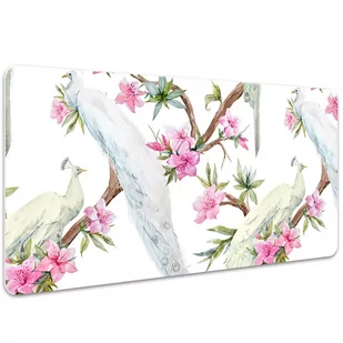 Podkładka na biurko Pawie na gałęzi 100x50 cm Podkładka winylowa na biurko to nie tylko praktyczny dodatek, ale także dekoracyjny element, który subtelnie podkreśli styl każdego pomieszczenia, bez względu na wiek czy charakter. Każdy blat, na którym zdecydujesz się położyć naszą wyjątkową podkładkę, nabierze nowego wymiaru estetycznego, wzbogacając zarówno przestrzeń dziecięcego pokoju, jak i eleganckiego biura. Wygląd naszej podkładki winylowej jest rezultatem precyzyjnego, cyfrowego druku, który podkreśla intensywność kolorów i detalii wzoru. Po rozłożeniu maty możesz spokojnie pracować, nie martwiąc się o niechciane rysy czy inne uszkodzenia. Mata jest niezwykle wytrzymała i solidna.