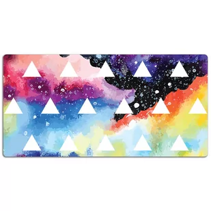 Podkładka na biurko Trójkąty w kosmosie 120x60 cm Podkładka winylowa na biurko to nie tylko praktyczny dodatek, ale także dekoracyjny element, który subtelnie podkreśli styl każdego pomieszczenia, bez względu na wiek czy charakter. Każdy blat, na którym zdecydujesz się położyć naszą wyjątkową podkładkę, nabierze nowego wymiaru estetycznego, wzbogacając zarówno przestrzeń dziecięcego pokoju, jak i eleganckiego biura. Wygląd naszej podkładki winylowej jest rezultatem precyzyjnego, cyfrowego druku, który podkreśla intensywność kolorów i detalii wzoru. Po rozłożeniu maty możesz spokojnie pracować, nie martwiąc się o niechciane rysy czy inne uszkodzenia. Mata jest niezwykle wytrzymała i solidna.
