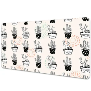 Podkładka na biurko Tropikalne kaktusy w doniczkach 90x45 cm Podkładka winylowa na biurko to nie tylko praktyczny dodatek, ale także dekoracyjny element, który subtelnie podkreśli styl każdego pomieszczenia, bez względu na wiek czy charakter. Każdy blat, na którym zdecydujesz się położyć naszą wyjątkową podkładkę, nabierze nowego wymiaru estetycznego, wzbogacając zarówno przestrzeń dziecięcego pokoju, jak i eleganckiego biura. Wygląd naszej podkładki winylowej jest rezultatem precyzyjnego, cyfrowego druku, który podkreśla intensywność kolorów i detalii wzoru. Po rozłożeniu maty możesz spokojnie pracować, nie martwiąc się o niechciane rysy czy inne uszkodzenia. Mata jest niezwykle wytrzymała i solidna.